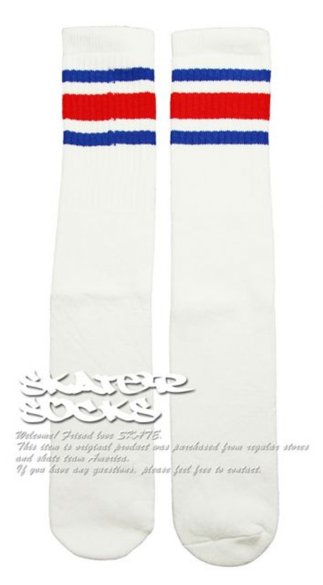 SkaterSocks ロングソックス 靴下 男女兼用 ソックス スケート スケボー チューブソックス Knee high White tube socks with Red-Royal Blue stripes style 3 (22インチ) SKATE SK8
