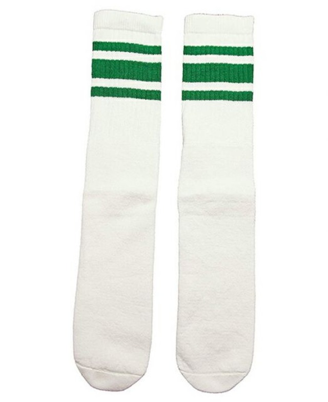SkaterSocks ロングソックス 靴下 男女兼用 ソックス スケート スケボー チューブソックス Knee high White tube socks with Green stripes style 3 (22インチ) SKATE SK8