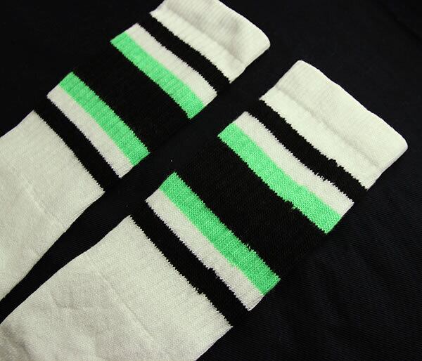 SkaterSocks ロングソックス 靴下 男女兼用 ソックス スケボー チューブソックス Knee high White tube socks with Black-Neon Green stripes style 4 (22インチ) SKATE SK8