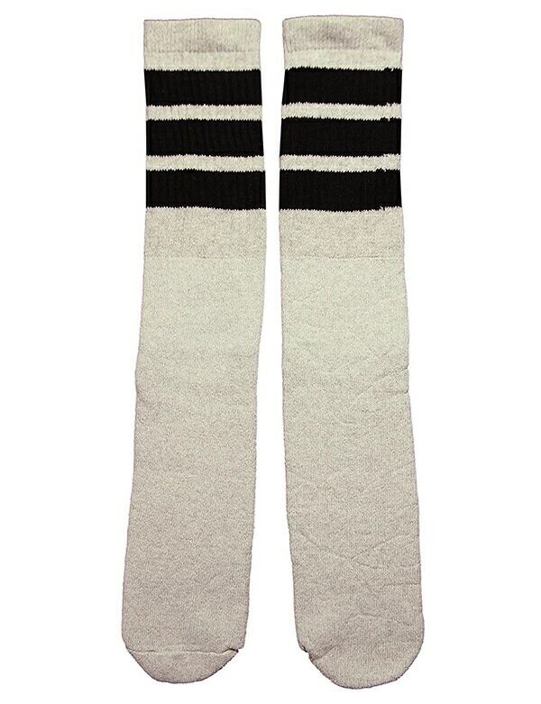 SkaterSocks ロングソックス 靴下 男女兼用 ソックス スケボー チューブソックス Knee high Grey tube socks with Black stripes style 1 (22インチ) SKATE SK8 スケートボード