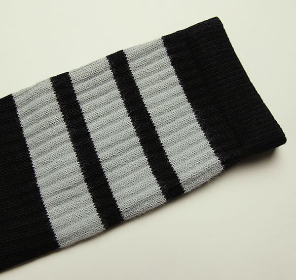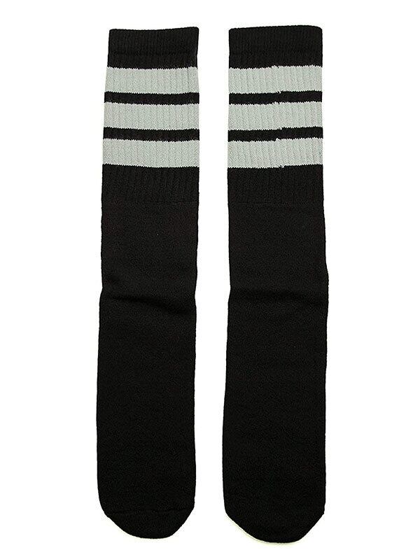 SkaterSocks (スケーターソックス) ロングソックス 靴下 男女兼用 ソックス チューブソックス Knee high Black tube socks with Grey stripes style 1 (22インチ) スケボー SK8 SKATE スケートボード