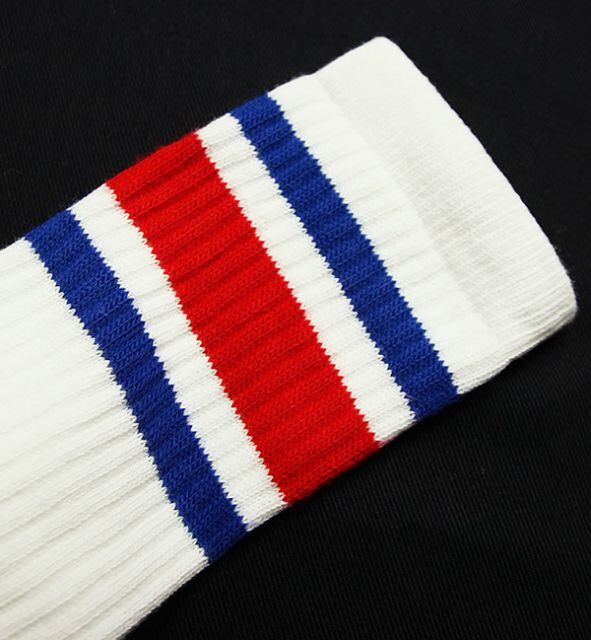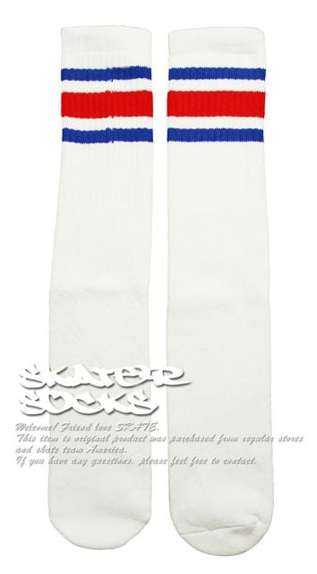 SkaterSocks ロングソックス 靴下 男女兼用 ソックス スケボー チューブソックス Knee high White tube socks with Royal Blue-Red stripes style 3 (22インチ) SKATE SK8