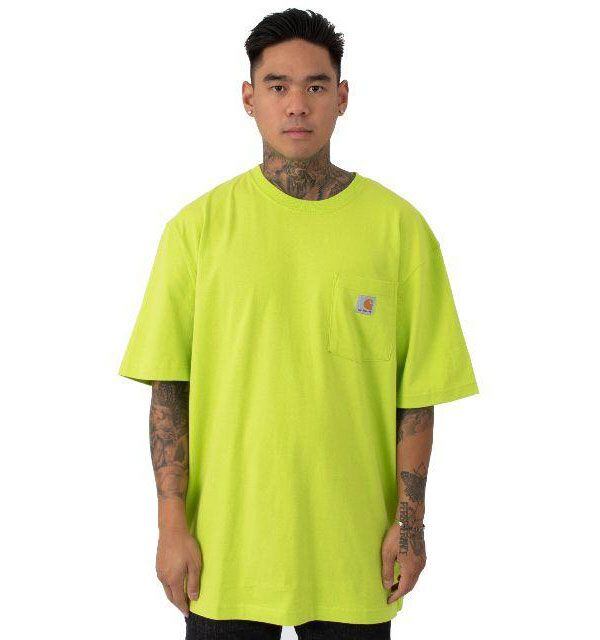CARHARTT (カーハート) US Tシャツ K87 Loose Fit Heavyweight Short-Sleeve Pocket T-Shirt Bright Lime ポケット付 無地