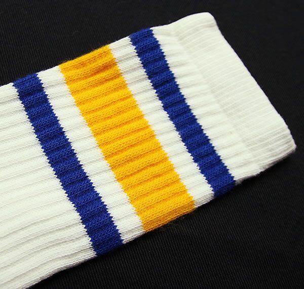 SkaterSocks ロングソックス 靴下 男女兼用 ソックス スケート スケボー チューブソックス Knee high White tube socks with Royal Blue-Gold stripes style 3 (22インチ) SKATE SK8
