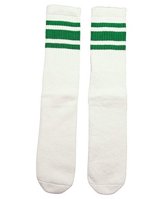 SkaterSocks ロングソックス 靴下 男女兼用 ソックス スケート スケボー チューブソックス Knee high White tube socks with Green stripes style 3 (22インチ) SKATE SK8
