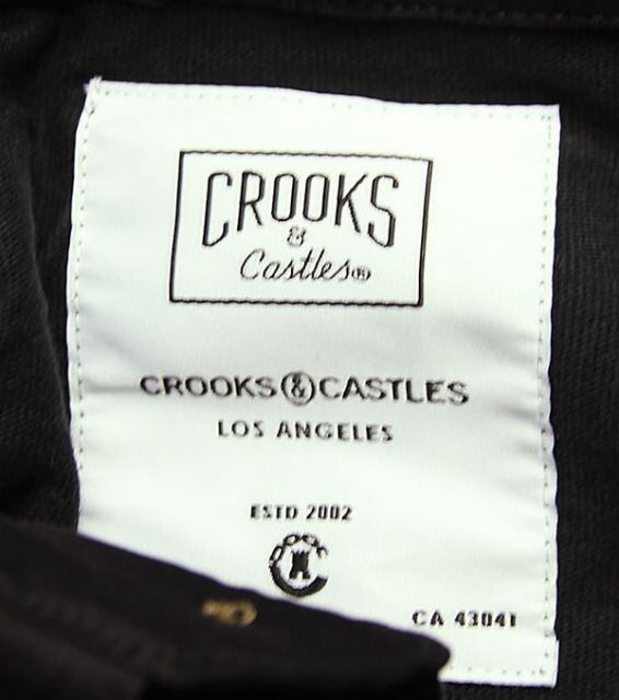 L.A出身のDennisCalvero主催のブランドで80年代、90年代の映画、コミック、小説、ラップミュージックなどに見られるBadなライフスタイルに影響を受け、デザインに取り入れられています。ブランド名のCrooksはその名の通り、「不誠実な、悪党」などを指し、Castlesは人に後ろ指を指されながら築いた城(=富)を表しています。有名ブランドのパロディからゴージャスでクールなデザインが特徴で、NY、LAはもちろん、現在では国内のストリートでも絶大な支持を得ている入手困難な人気ブランドです。