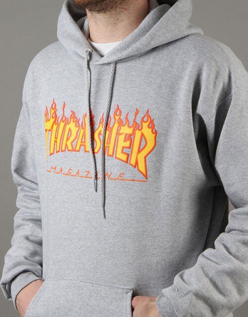 THRASHER (スラッシャー) US パーカー プルオーバー Flame Logo Pullover Hood Gray スケボー SKATE SK8 スケートボード