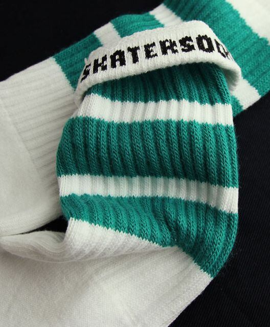 SkaterSocks ロングソックス 靴下 男女兼用 ソックス スケボー チューブソックス Knee high White tube socks with Teal stripes style 1 (22インチ) SKATE SK8