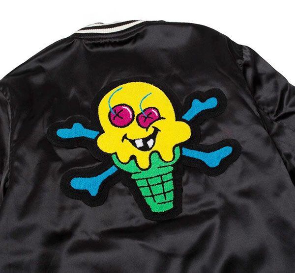 ■PharrellWilliams(ファレル・ウィリアムス)主催!!ICECREAM(アイスクリーム)から新作スタジアムジャンパーを入荷致しました!!ICECREAMを象徴するアイコンのひとつ、CONE&BONEがデザインされたサテン素材のジャケットです!!現在はオフィシャル以外の小売店流通がストップしており、姉妹ブランドBILLIONAIREBOYSCLUB(ビリオネアボーイズクラブ)やABATHINGAPEの逆輸入再熱により価値が高騰している狙い目ブランド!!少量入荷ですのでお見逃し無く!!!
